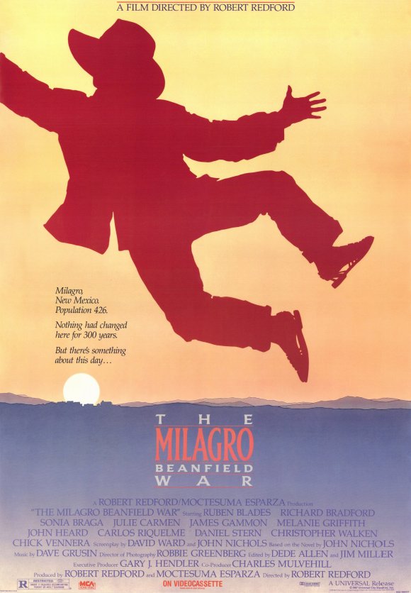 IMDb plot summary: In the tiny town of Milagro, New Mexico, where the local water is a premium resource, shady developer Ladd Devine has conceived a glitzy resort that will ultimately siphon off all the water from the neighboring crop-fields. When handyman and farmer Joe Mondragon accidentally breaks a water valve reserved for major companies, he inadvertently sets off a small-scale water-rights war between the farmers and the developers.